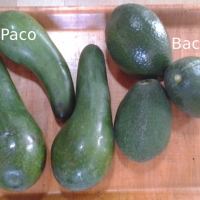 Early avocados varieties, Bacon. Better eaten when really getting soft on the whole fruit. Those avocados are the early varieties, not as rich as later ones. Once ripe they can be stored in the fridge for a couple weeks. Do not store them hard in a cold and moist area. Those avocados come from our farm as well as from the farms of Francisco.
